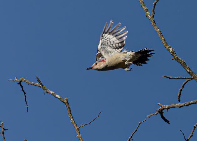 The Red-bellied Woodpecker is one of those birds that catches your eye the moment sunlight hits its back. Despite its name, the most striking feature isn’t its belly but the bright red cap and nape that glow like fresh paint.