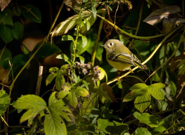 Ruby-crowned Kinglets are small but full of personality. I caught this one just as it paused in a bit of light to take a look over its shoulders. I have yet to see that much talked about ruby/red crown. Most of the time, the crown stays hidden under the olive feathers only being flashed in certain moments.