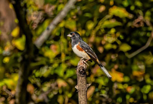 An Eastern Towhee perched proudly on a low branch, its black head, white belly, and rich chestnut sides catching the light just right. I hadn’t seen this bird before, so it instantly caught my attention. It stayed long enough for a good look, alert, calm, and perfectly posed, before flying off into the thicker brush. A new lifer for me, and one I won’t forget soon.