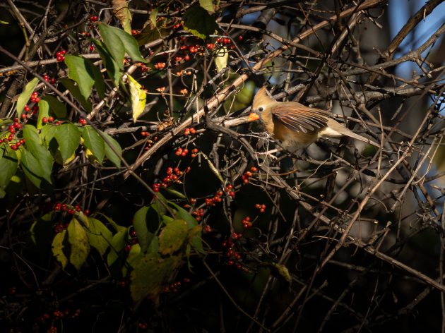With Stephens help, the morning came alive. Northern Cardinals hopped around on the ground and in the bushes, a Red-bellied Woodpecker was having breakfast high up on a leafless branch before flying off, a Northern Flicker flew past.