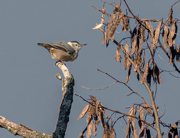 I cannot recall seeing a White-breasted Nuthatch perched like this before, they always seem to be head down on a tree trunk, but this one was happily perched very high up preening itself. It remained in this location for around 10 mins before flying off.
